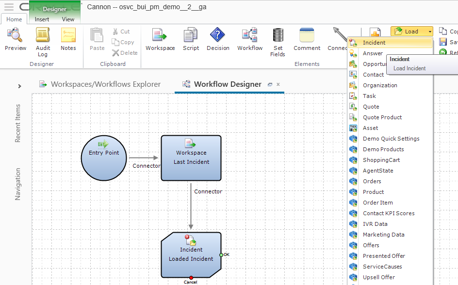 The Load Element in Workflow allows a specific record to be loaded in the workflow at a defined stage. It is a constant record that is added to the workflow definition.