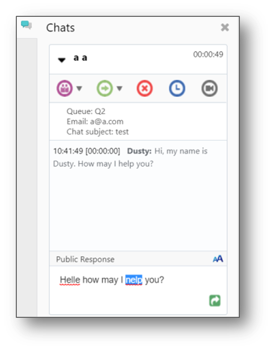 This feature also applies to Supervisors who join a chat or are private messaging during a chat session. This feature allows agents to quickly identify when a spelling mistake occurs and easily fix the problem.