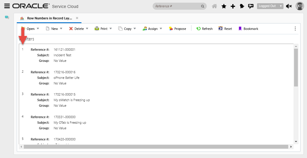 Most reports use tabular layouts with column headers across the top of the report and data listed in rows beneath the column headers. However, you can use a record layout to reformat the report to remove the column headers and instead display the field names inline with the field’s values from each record returned in the report. Although record layouts were already supported in Agent Browser User Interface, the ability to render the row numbers on the record layout was not.