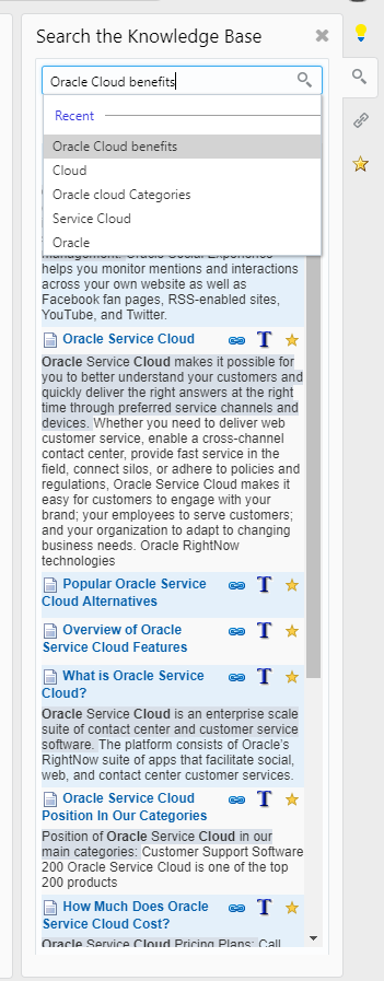 Recent Searches Drop Down on Knowledge Advanced Search Component