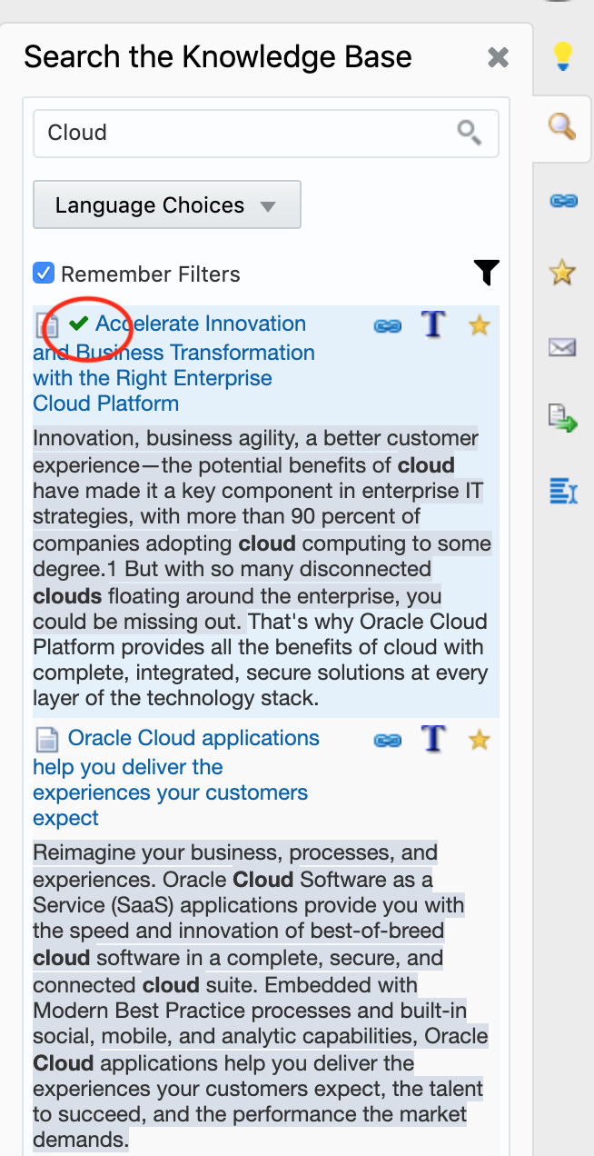 Linked answers icon added to 'Recommended Answers' module and Answer detail page. The icon helps users identify the answers that are already linked to the incident without needing to go to a separate 'linked answers' module.