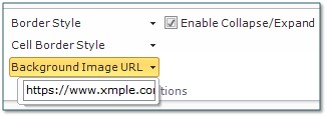 Table Options (Background Image URL, Enable Collapse/Expand)