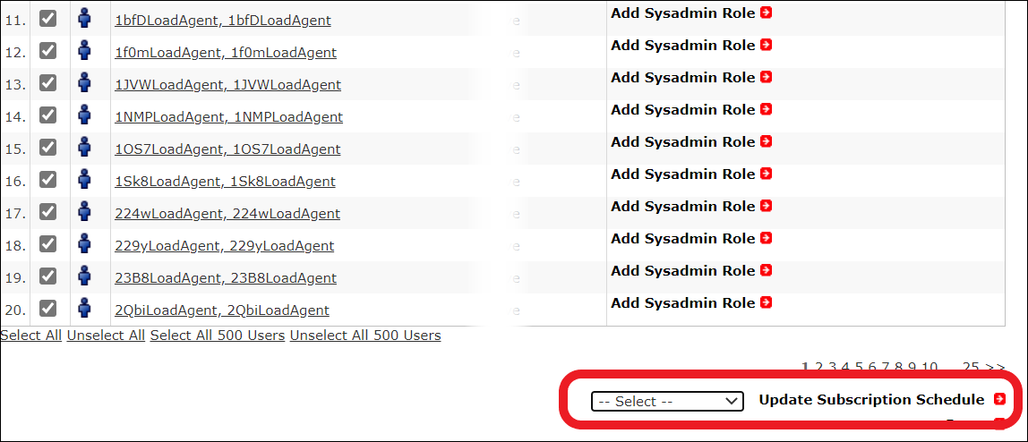 - Administrators can set the interval at which users will receive subscription notification emails. They can set the default frequency for new users, and update the frequency for groups of users as a bulk operation.
