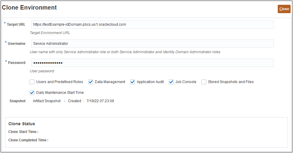- Ability to Keep the Daily Maintenance Start Time of Target Environment in Clone Environment