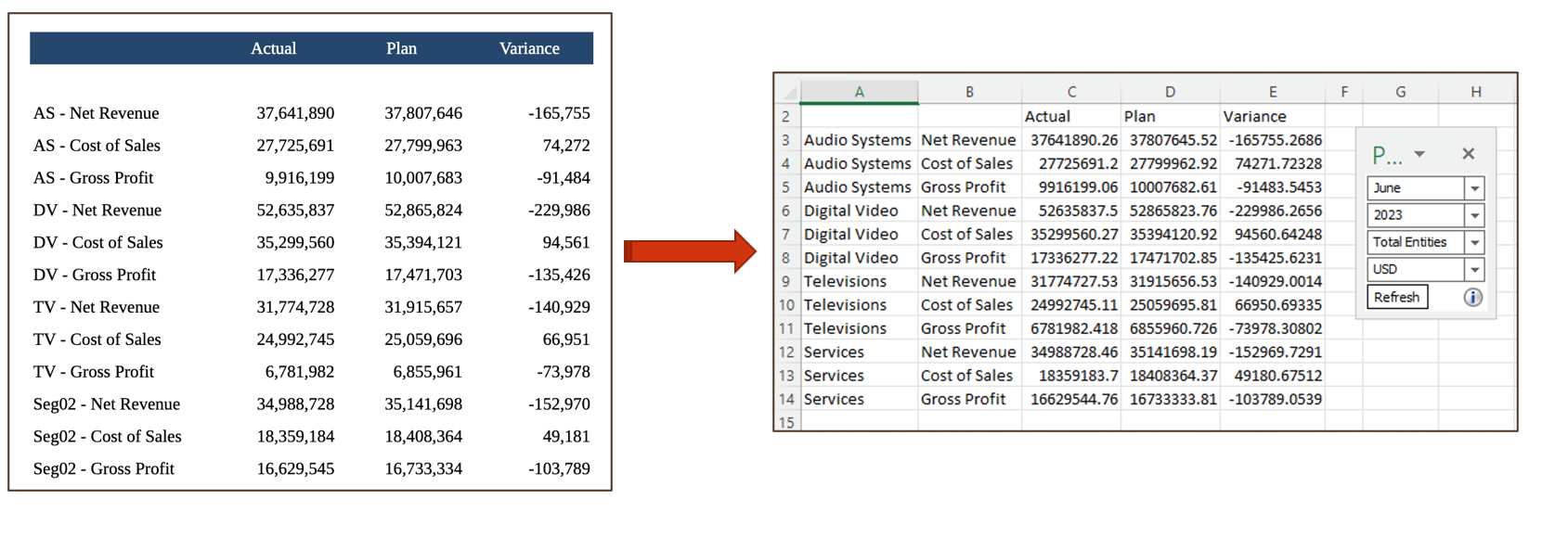 Previously, when importing or exporting a grid to Excel ad-hoc with formula and text segments, the formula and text content were included as static (non-refreshable) text.