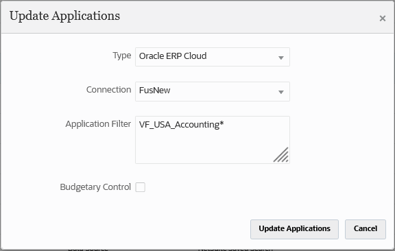 Business Benefit: The Update Applications feature enables you to get the most up-to-date information from Oracle ERP Cloud or Netsuite data sources.