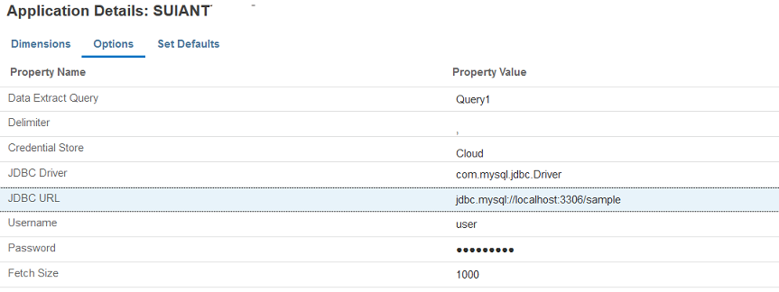 - In Application Details for the on premise data source application, populate the JDBC driver and URL fields. In the following example for a MYSQL database, you might specify: