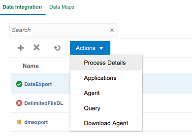 The Applications option is available on the Actions drop-down on the Data Integration home page for administrators only.