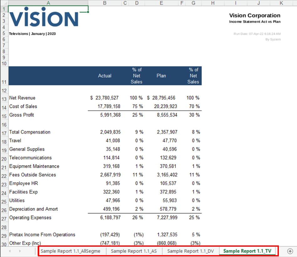 When downloading a Report to Excel (fully formatted) from the web, or importing a Report in Smart View, the worksheet names will reflect the report name followed by the first POV dimension with Print All Selections, truncating the sheet name as needed to meet Excel’s 31 character limit.