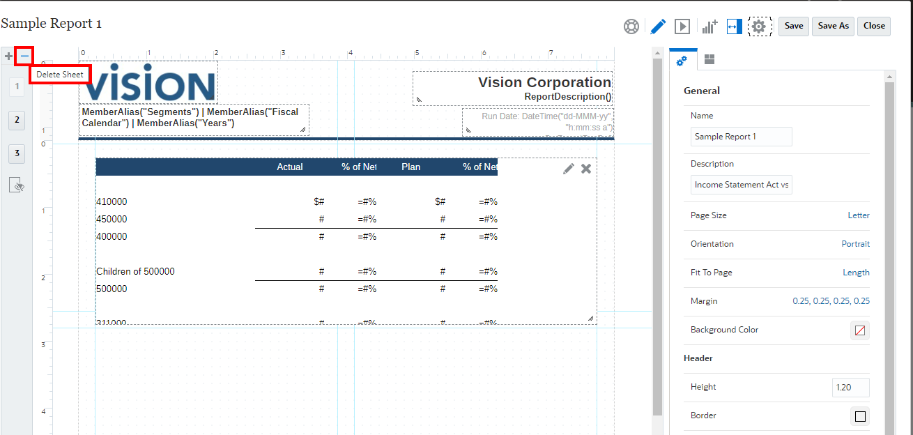Business Benefit: This provides additional flexibility for Report Administrator to delete unwanted sheets with ease.