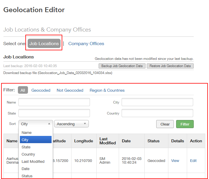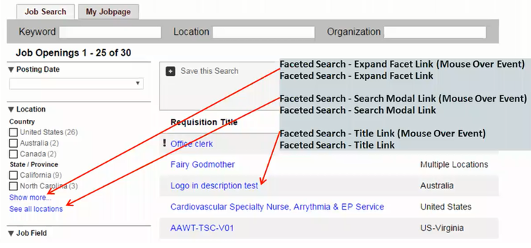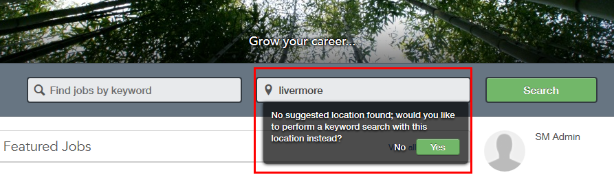 If users are searching for jobs with Geolocation Search disabled, historically an exact match of the search string must be entered to find jobs in that location. In 15B.6, we are adding children to the search results of the exact matches for the levels configured in the Location User Preference setting. For example, if the Location User Preference has been configured for the Country, State and City levels (US, CA, San Francisco), and there are children of that string, i.e., Address levels (US, CA, San Francisco, Folsom Street), those children of exact matches are now included in the search results as well.