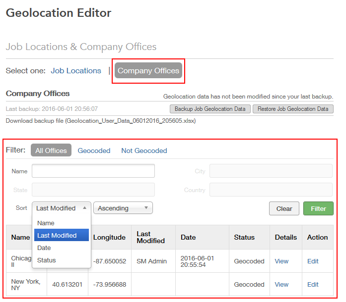 The Location Display Preference setting, as it was named prior to 15B.6, has been renamed to the Location User Preference setting in 15B.6. The setting has also been moved from the Jobs section of Sourcing Configuration to the Users section of Sourcing Configuration.