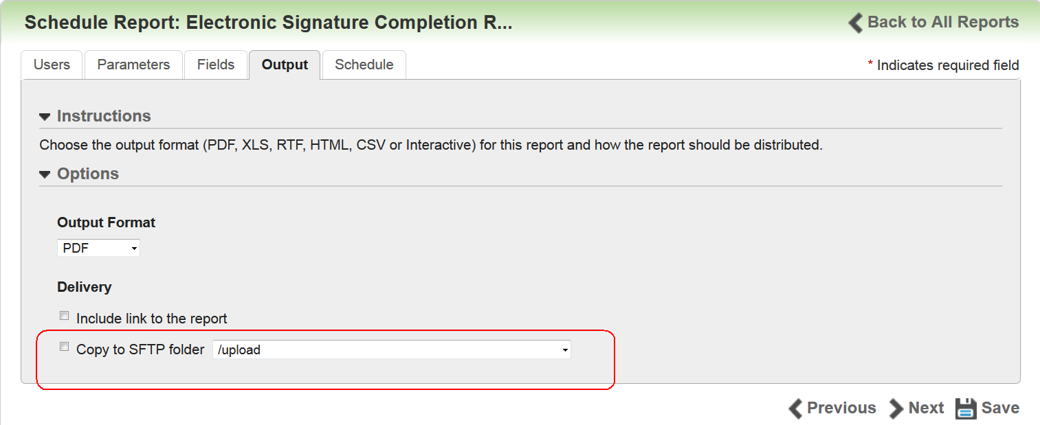 Use of this field enables you to streamline additional post-processing workflows you might have in place. In addition, if you use this with the CSV output, saving to an SFTP folder helps to automate report data into third party integrations or operations.