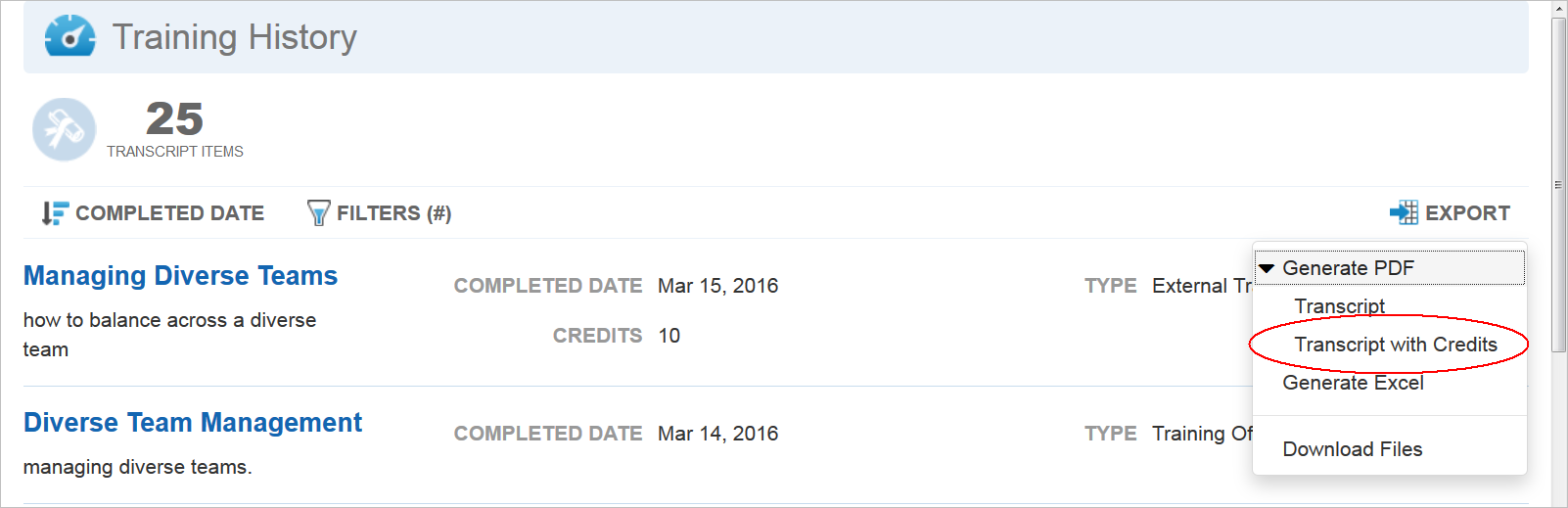 There are new enhancements to the Transcript Widget, a change to the Learning Plan Widget, and a brand new My Tasks Widget included with Release 16A for Oracle Learn Cloud.