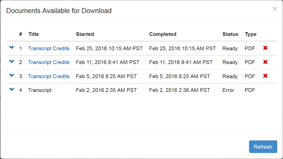 ), you can click the new Refresh button to see if it is done. - Date Started default sort order - shows the most recently run file at the top of the list. Previously the most recent file appeared at the bottom of the list. Now, you no longer have to scroll to the bottom to see your most recent file.