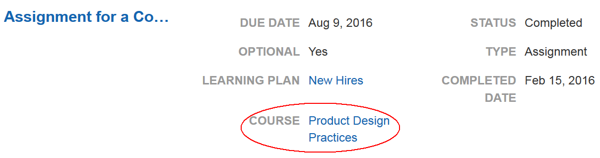 The name of the Course and a hyperlink to the Course are listed in the line item for the task.