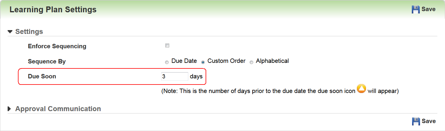 Learning Plans Settings Due Soon Flag and My Task