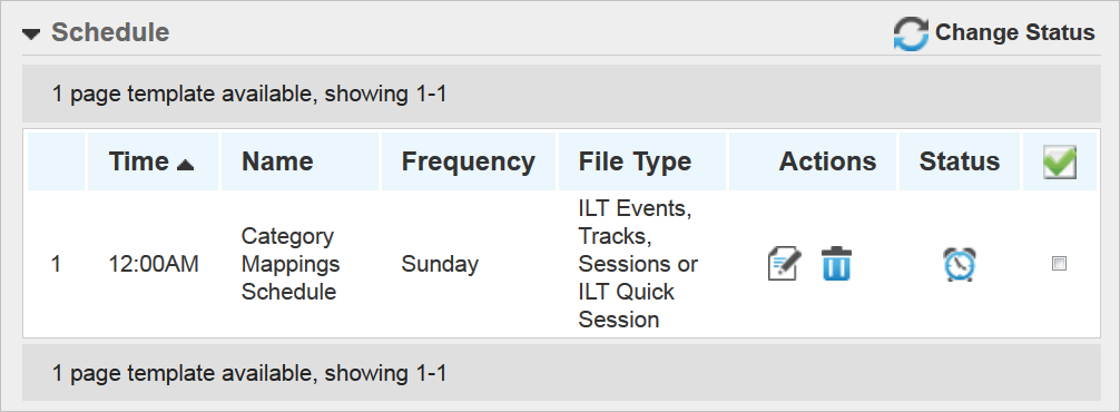 ), or change the status of a schedule (by using the check box and the Change Status icon). When a schedule is active, the