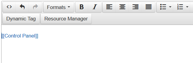 Once inserted, the links, images, and tags look similar to the following on the Page or Page Template. To remove any of them, simply highlight and delete them. You can use all standard HTML markup and style sheets with these new elements.