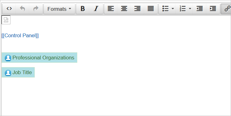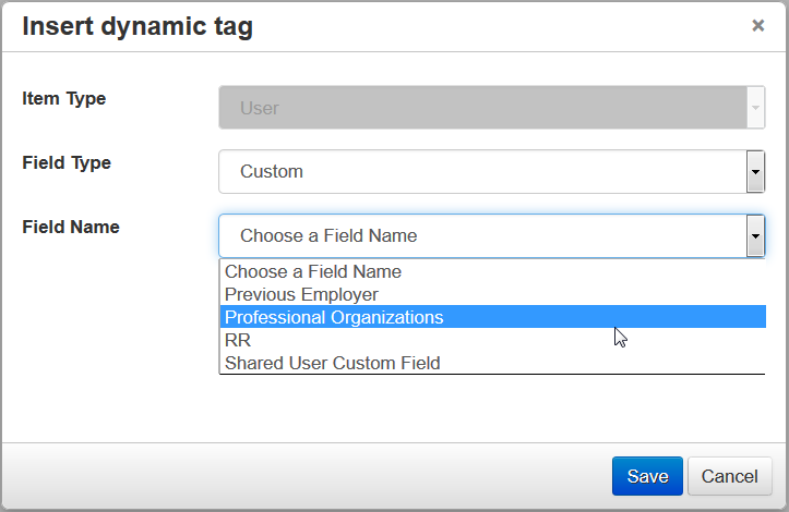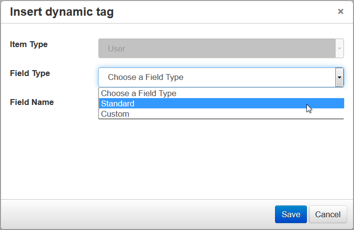 You can now select from a predefined list of Tags, which are related to User fields. Both User standard and custom fields are supported. There is a new Dynamic Tag button on the toolbar.