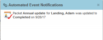 In the above example, the packet owner will receive an email a few minutes after the status of the packet has been changed to Completed, as well as see a small notification in the upper right-hand corner new auto events icon.