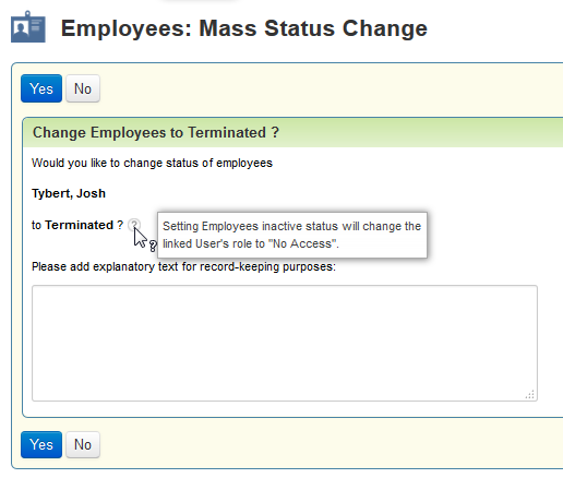 Message When Changing Status of Employee to an Inactive Status