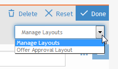 - Notice there is a Manage Layouts menu just below the buttons. From this menu, select the Offer Approval Layout option.