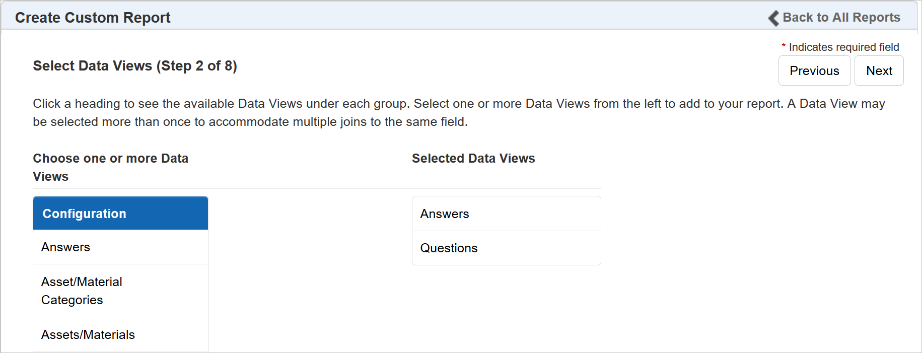 The Previous and Next buttons now display at the top of the page when creating or modifying BI Reporting Custom Reports.