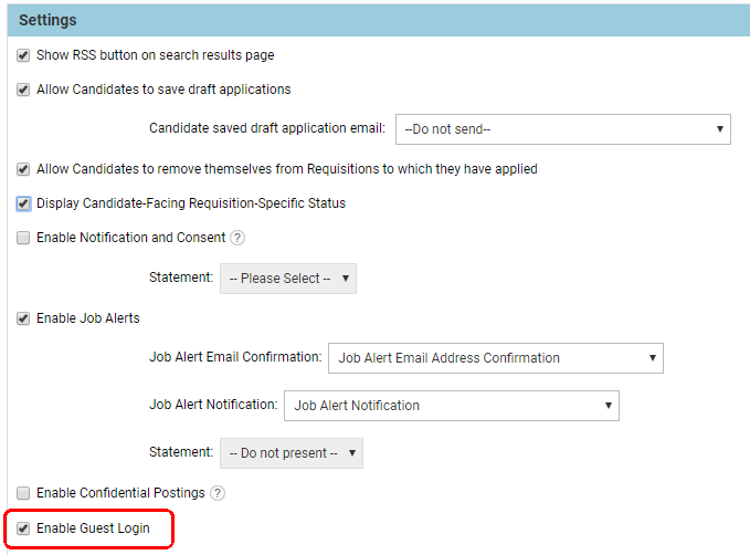 NOTE: You cannot use this feature for a Career Center that has Confidential Postings enabled. It is also recommended that you do not enable this feature for a test Career Center, or a Career Center for internal jobs.