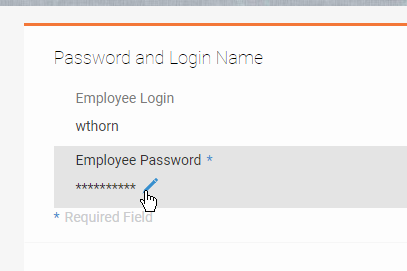 - Click the widget to configure. You can delete either of the fields or change one to read only, if desired. For example, you may wish to display the Employee Login field, but mark it as read only, and only give your employees the ability to update their password from the Talent Center.