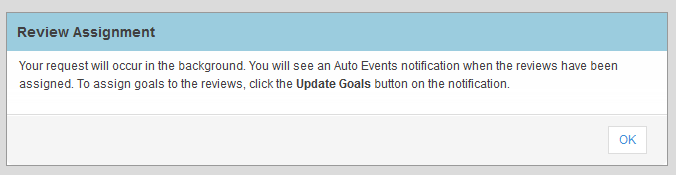 When you manually assign reviews to one or more employees, the system now creates the reviews in the background. This change was made to improve performance. You will see the following message once you have completed all the information: