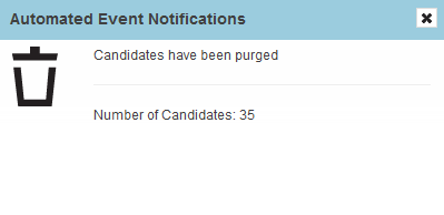 The actual deletion process is the same as if an administrator manually deleted a specific candidate. All data is removed, and there is no longer a record of that candidate. This feature allows customers to keep a more manageable list of candidates in their database, easily removing those candidates who have not been updated in any way for a number of years.