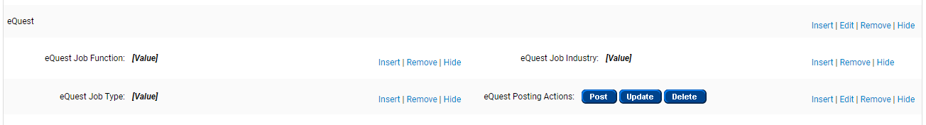 - Edit your requisitions that you would like to post to eQuest, and select values for the eQuest Job Function, Job Type and Job Industry fields. Save the requisitions with this information.