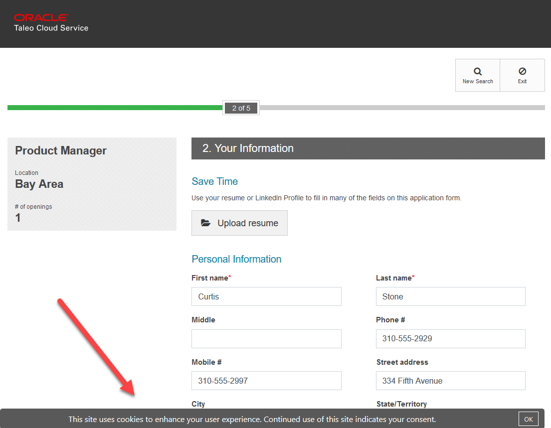 This update introduces a new option for the Career Center, which displays a simple, one-line banner offering the job seeker an opportunity to consent to all first-party, strictly necessary cookies set by the Career Center, while searching and applying for open jobs.