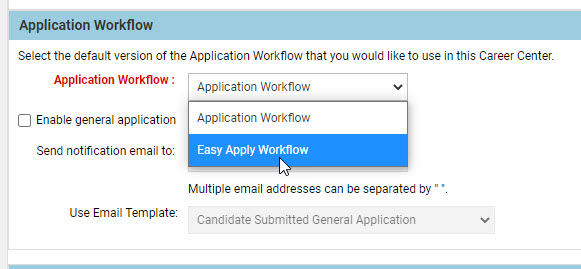 - Scroll down to the Application Workflow section, and select the Easy Apply Workflow from the Application Workflow drop-down menu.