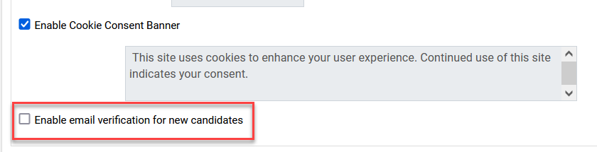 This security feature enables email verification to all new job applicants in a particular Career Center, before they can continue the application process, thus ensuring that all applicants enter valid email addresses before recruiters communicate with them.