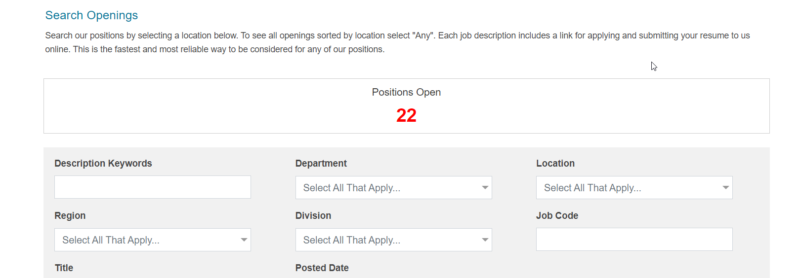 - You can go directly to your corporate job listings. If the look and feel matches the below example, you are already using the Career Center.