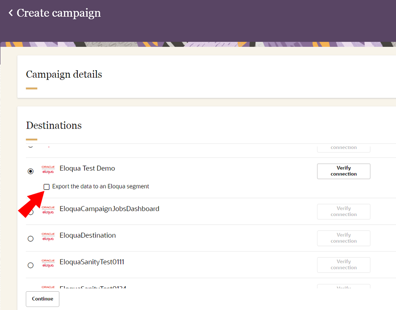 Export Campaign Data to Oracle Eloqua Segments