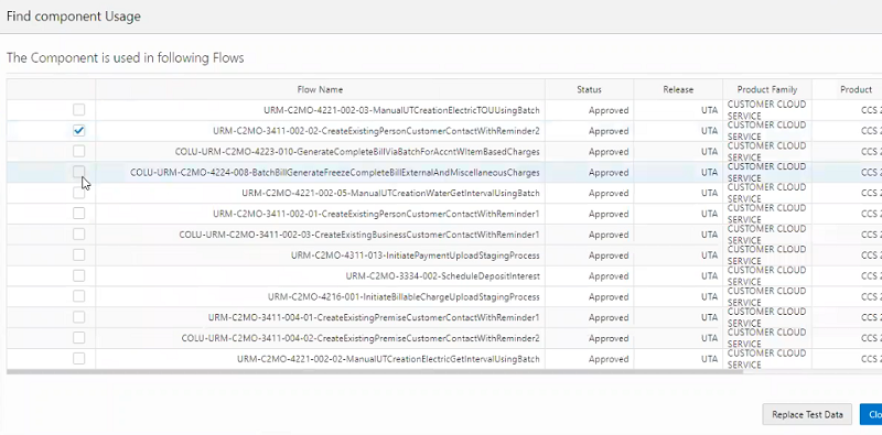 Bulk Replace Test Data enables you to update or replace test data in multiple flows all at once in cases where you need to correct or update administrative test data type such as Premise Type, Asset Type, and more.