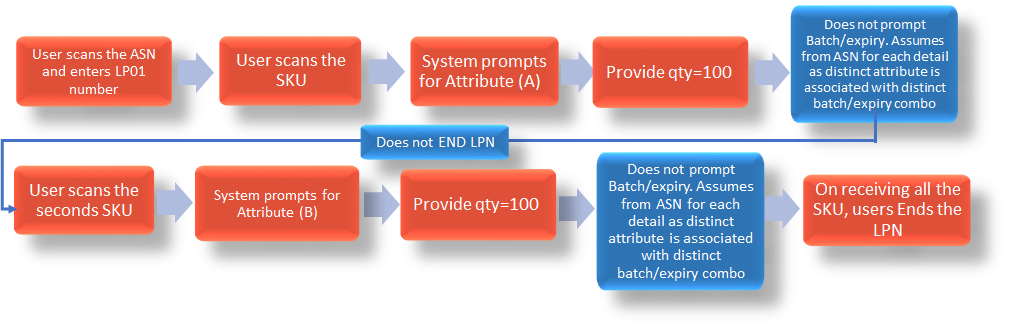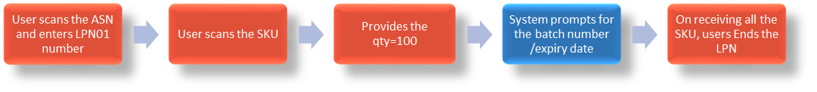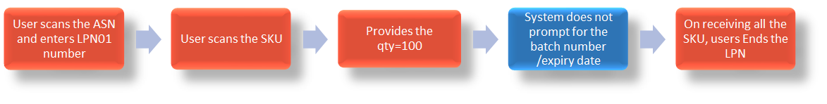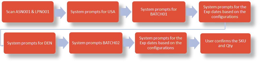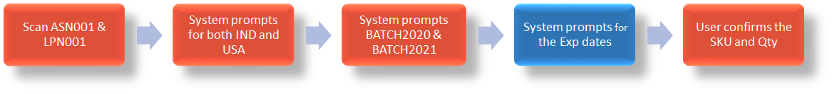 - When an ASN having multiple details that are batch/expiry date tracked SKUs, the system prompted for batch number only for the first batch and did not prompt for remaining details in the ASN. Similarly, the system prompted only for the first expiry date populated on the ASN. Due to this behavior, the user was not able to receive multiple batch number /expiry date in a single IBLPN while receiving a Non-Cartonized ASN.
