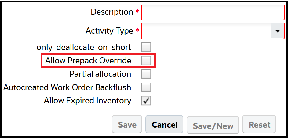 - A new flag “Allow Prepack Override” is introduced in the Work Order Type UI. This new flag allows you to:
