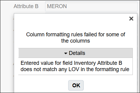 | perform_lpn_barcode_checks | Optional | Boolean | true | Validations against Barcode Type configured and BARCODE_VALID_CHARS allowed. |