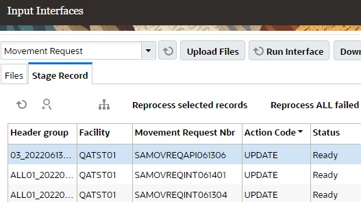 For more details on the Movement Request-related Inventory History Transactions, see the Interface Specifications and Trigger Points documents.