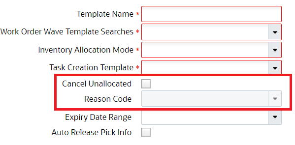 | Auto Release Pick Info Checkbox | Optional Checkbox |