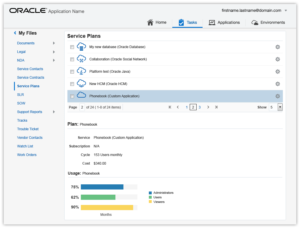 Application Navigation is a ubiquitous navigation feature that provides the user with immediate access to any service module.