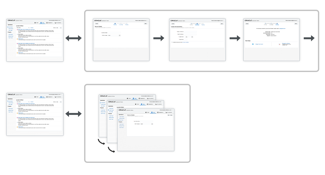 Non-linear navigation is used within and most frequently between service modules in the Oracle Alta UI.