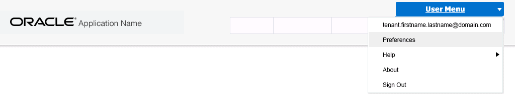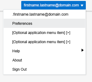 The User Menu provides ubiquitous access to suite features. The following image shows UI chrome navigation accomplished through the User Menu.