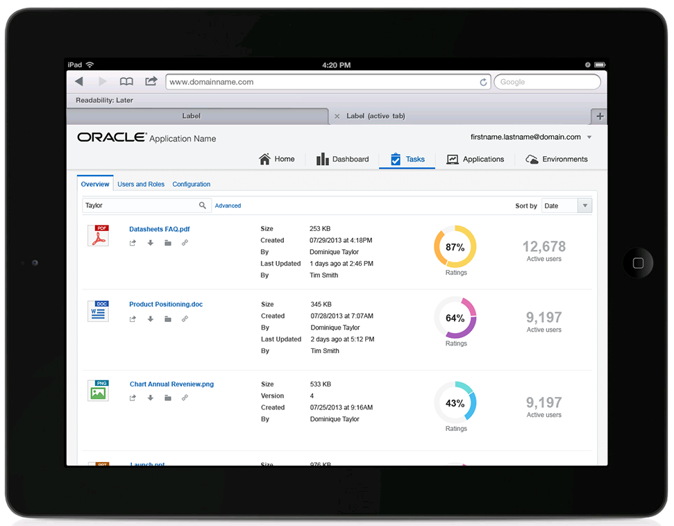 This image presents example content in an Oracle Alta UI page layout on a tablet device.