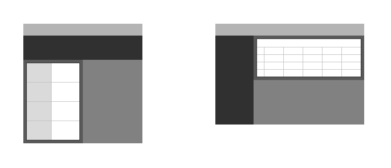 Re-articulation can take place concurrently with partition and block transitions, although not necessarily. Because re-articulation can create content disparity, the following re-articulation patterns are recommended for navigation areas and data grids.