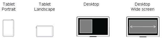 Oracle Alta UI targets a limited number of break points; these are enumerated as follows for the 4:3 ratio. The ratio gives deference to mobile displays. Each targeted display width shown below maps to a device type and display orientation.